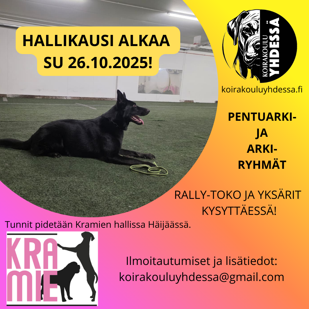 HUOM! Mikäli vuorotyö on este osallistua kurssille niin laita rohkeasti viestiä! Katsotaan mitä voidaan tehdä, ettei työ häiritse liikaa tekemistä ihmisen parhaan ystävän kanssa!